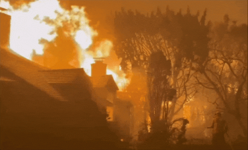 数千座建筑在火灾中损毁,其中包括好莱坞明星的豪宅,如蝙蝠侠扮演者的价值2050万美元的住所。另有上万栋建筑处于危险之中。